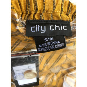 NEW City Chic Women’s Plus Size 16 Yellow Striped Button Closure Midi Dress