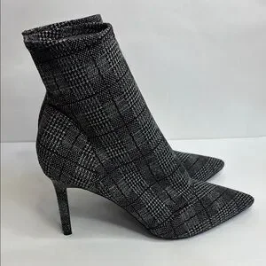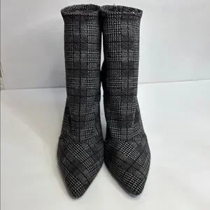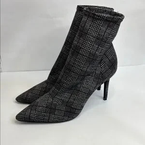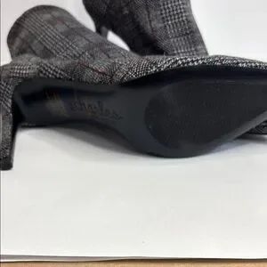 FINAL! NWOT! Charles David Black Red and Gray Tweed Plaid Spike Heeled Boots