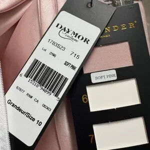 Elegant off the shoulder, "Soft Pink" Alexander by Daymor formal gown. Perfect for Mother of the Bride or Mother of the Groom. Dress is brand new and was never worn and is in perfect condition with original tags still attached. Comes with 2 extra yards of matching fabric, which can be used to make a matching drape/jacket.