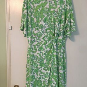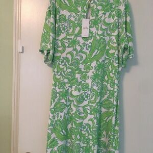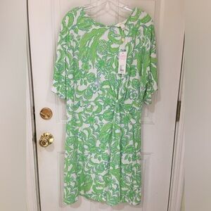 NET Lilly Pulitzer Shaw Dress size Large in Resort White Daffodil Hill stylish with this vibrant green and white print . Perfect for adding a pop of color to your Lilly collection. Currently selling for $158