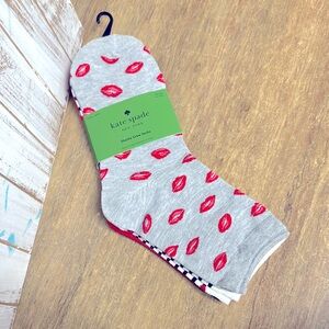 Kate Spade NEW crew knit mc polka dot logo stripe lip kiss print short socks