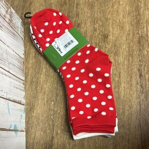 Authentic Kate Spade NEW great gift crew knit multi color red heather grey black white polka dot logo stripe lip kiss print 3 three pairs women’s 4-10 osfm one size fits most bundle set matching adult junior soft shortie socks.