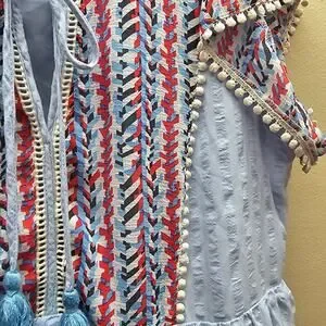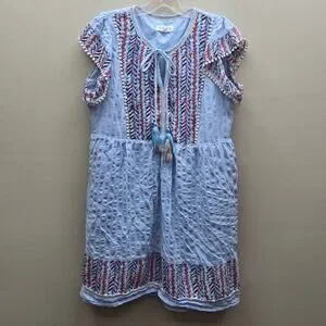 THML Women's Multicolor Embroidered Mini Dress Cowgirl Boho Light Blue SZ Small