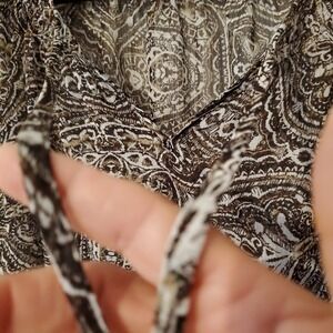 Liz Claiborne Blouse Size Xl Brown Print Semi Sheer Ruffle Cap SLV V Neck Career