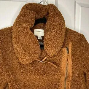 Anthropologie Marrakech Fuzzy Teddy Tan Brown Aviator Moto Style Jacket XS