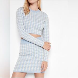 Express Blue Houndstooth Women's Top & Skirt Set size Small