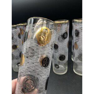 MCM Libbey 22k Gold Trim Coin Tom Collins 7” Highball Bar Glasses Set Of 8