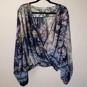 Chic floral bohemian blouse featuring balloon sleeves. Perfect for a stylish look.