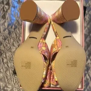 Elevate your style with Gianni Bini's stunning heels, featuring a captivating pink and orange color palette. These shoes are designed with a chic and artistic flair, perfect for making a bold statement. The elegant heel adds a touch of sophistication, making them ideal for both casual and formal occasions. New without tags.