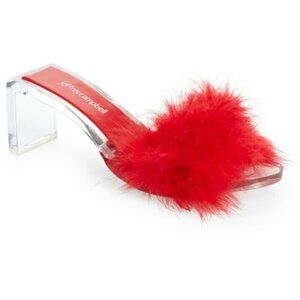 Jeffrey Campbell Luxuries Acrylic Sandal with Red Genuine Feather Size US 6