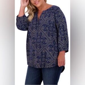 Lucky Brand Blue 3/4 Sleeve Boxy Tunic