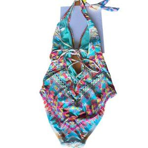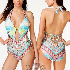 Bar III | Swimwear | One-Piece Tribal Print Halter Top Swimsuit | Cutout | Small