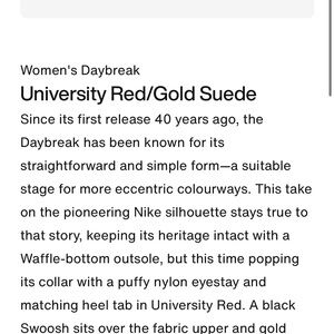 Women’s NIKE Daybreak Qs University Gold, Red, and Suede Sz 9 Sneaker CQ7619-700