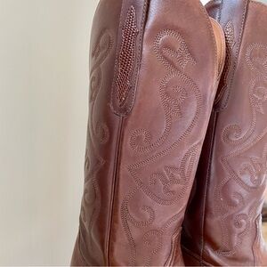✨SOLD✨ Vintage Leather Embroidered Cowboy Western Boots in Mahogany Brown - 6