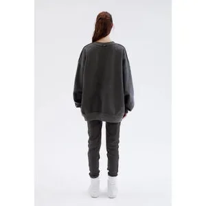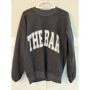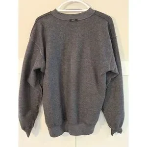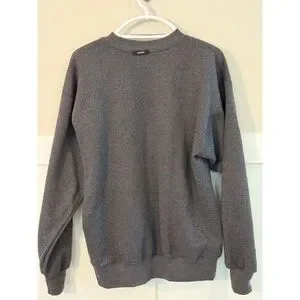 Varsity Sweatshirt, size L. It is dark grey and made of 90% Cotton / 10% Polyester. The sweatshirt features a monochrome logo on one side, and a white logo on the other.