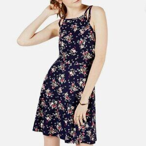Planet Gold Medium Evening Blue Floral Double Strap Skater Dress NWT