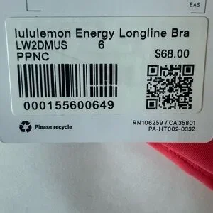 Lululemon energy longline sports bra, size 6, color pink punch. New with tags.