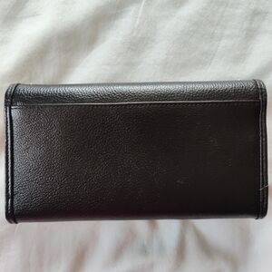 Harley Davidson Ladies Embroidered Leather Traditional Wallet. 7 1/2" x 4 1/4". Genuine Leather. Black. Snap Closure. Multiple Card Slots. Interior Zip Pocket. Back Slip Pocket. Smoke Free Home.