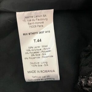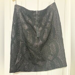 This Lanvin skirt, in a sleek black and silver palette, is designed in a midi pencil style perfect for special occasions. The fabric features a subtle metallic sheen and a sophisticated swirling pattern, adding a touch of elegance to your evening ensemble. Its form-fitting silhouette ensures a chic and polished look for any night out. Superb never worn condition.
