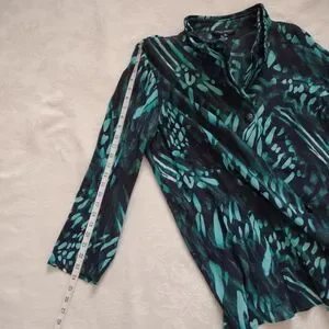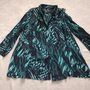 Ming Wang Teal and Black Patterned swing jacket blazer wired collar