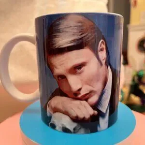Beautiful Hannibal Lecter Mads Mikkelsen images on an 11 oz coffe/tea hot beverage mug. 2 images with Eat the Rude on it. Comes with gift box