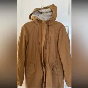 Stay warm and stylish with this brown hooded jacket. Perfect for chilly days.