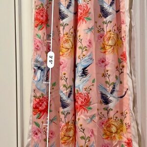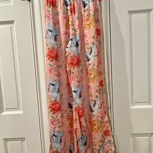 Floral crane/stripes border print elastic waist pants with beaded tassel drawstring, 2 front pockets