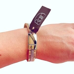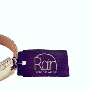 RAIN Jewelry Collection Cream Leather Studs Rhinestones Crystal Gold Magnetic Clasp Bracelet Jewelry