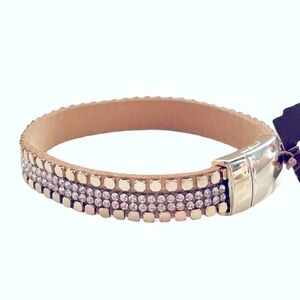 NWT Cream Leather Studs Rhinestones Crystal Gold Magnetic Clasp Bracelet Jewelry