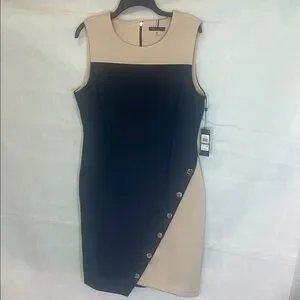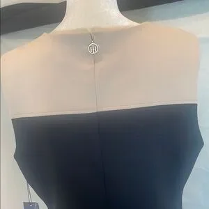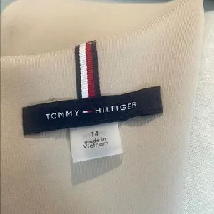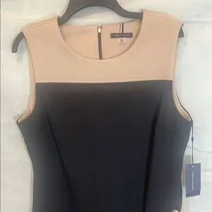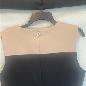 Elegant black piece from Tommy Hilfiger. Ideal for versatile styling.from shoulder to Hem appx 40” , Armpit to Armpit appx 20.1/2 “ , Back center has a Zipper with hook for closure appx 19.1/2 “ .