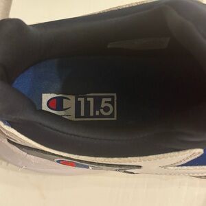 Notable features include bold Champion branding on the midfoot strap and pull tabs at the tongue and heel for easy on and off.