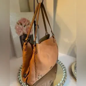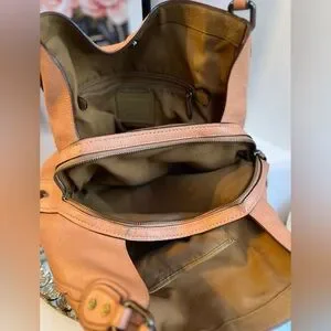 Discover the perfect blend of style and functionality with this Coach shoulder bag. Crafted from luxurious tan leather, it features a slouchy silhouette that exudes casual elegance. The gold-tone hardware adds a touch of sophistication, making it an ideal accessory for any occasion.