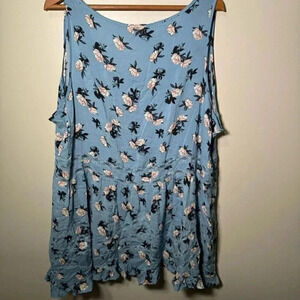 Torrid Floral Print Challis Hi-Lo Ruffle Tank Top 3X