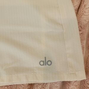 Stylish ALO Yoga jacket and shorts set. Features a drawstring waist and front pockets. Perfect for casual wear. Great condition, there is a small spot on shorts that you can barely see.