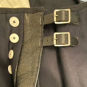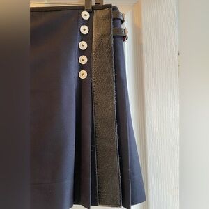 Buckled Leather Trim Pleated Wool Kilt