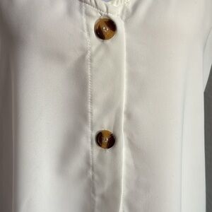This elegant cream top features a stylish button-down design, perfect for any occasion. Its soft fabric and flattering fit make it a must-have addition to your wardrobe.