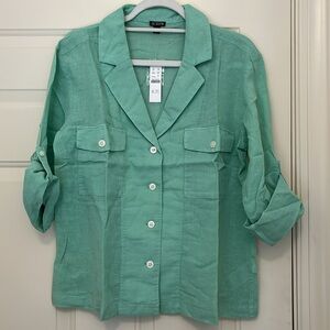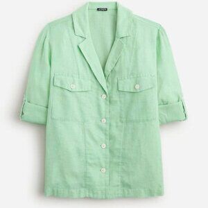 J. Crew Misty Spearmint Linen Blend Camp-Collar Shirt/NWT/6