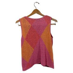 Marissa Christina Pink and Orange Argyle Knit Tank Top large