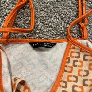 SHEIN Orange White Sleeveless Crop Camisole