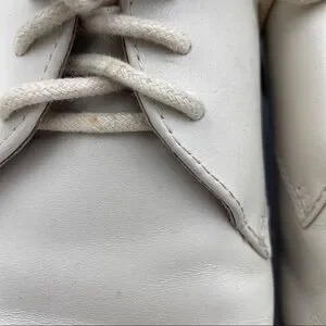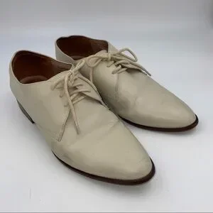 Elegant cream leather oxfords. Sleek design with lace-up closure. Perfect for formal occasions.