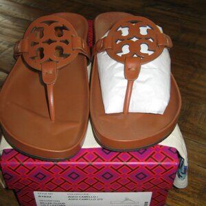 Tory Burch Miller Cloud NEW NEVER WORN. Size 8.5 - Aged Camello. The color is a beautiful rust caramel with a slight orange undertone. I bought these sandals and I ended up having foot surgery and can longer wear sandals or so many of my shoes. So sadly, I'm selling these. These are new and never worn but tried on. Box and duster bag included.