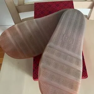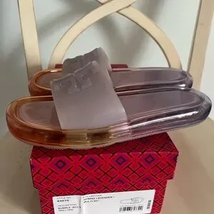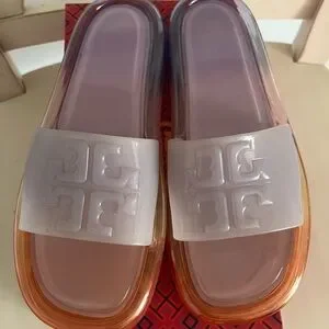 Tory Burch chic lavender bubble slides with orange accents. Worn once