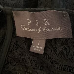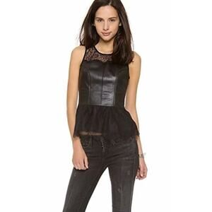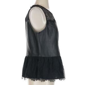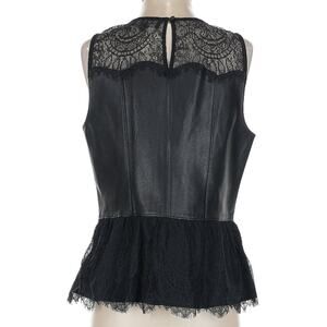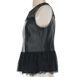 Patterson J. Kincaid Black Sleeveless Lamb Leather & Lace Peplum Top L