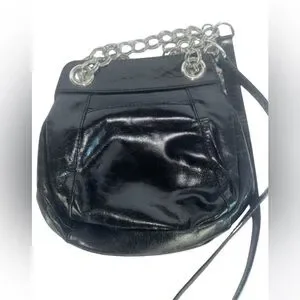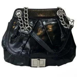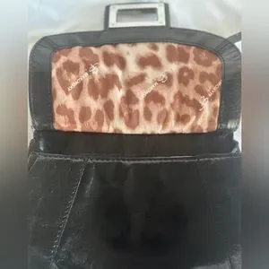 Stylish and functional, this BMakowsky shoulder bag features soft black leather with silver chain accents for a modern, edgy look. Inside, you'll find a fun leopard print lining that adds a bold touch of personality.