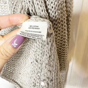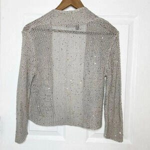 EILEEN FISHER Taupe Sequin Knit Open Front Cardigan Size Small