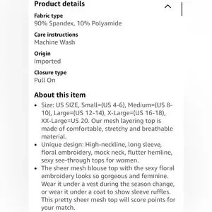 Tags: shirt, mock neck, top, white, lace; floral; casual, comfortable; classic; closet clear out; closet clearout; trending now; mesh; Blouse; long Sleeve; high Neck; Women's Clothing; sheer; sexy; embroidered