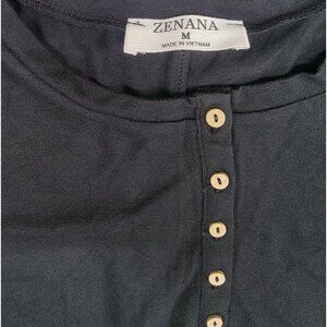 Zenana Dress Casual Short Sleeve Henley Style Dress Medium Black Womens NWOT
