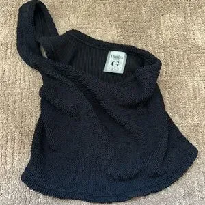 Stylish black one-shoulder knit top. Perfect for casual outings. One size. Classic crinkle. Black. Never worn. Only tried on. Bought directly from Hunza for $125. Smoke free home. I have other Hunza Tops as well.