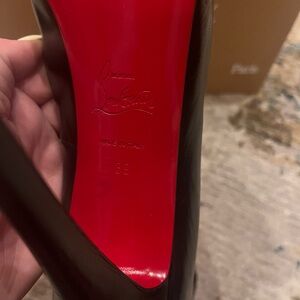 Christian Louboutin Very Prive 120 KID Black/Red Heels. Womens size 39 fits a US 9. Pet and smoke free home. Beautiful condition no flaws other than the scuffs on the bottom of the shoe. Offers and questions welcome.