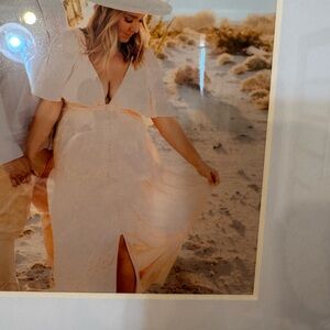 This stunning pink maxi dress by Free People features a flowing silhouette with a V-neckline and flutter sleeves, perfect for a wedding guest or cocktail occasion. The dress is crafted from a luxurious fabric that catches the light beautifully, adding an ethereal touch to its elegant design.